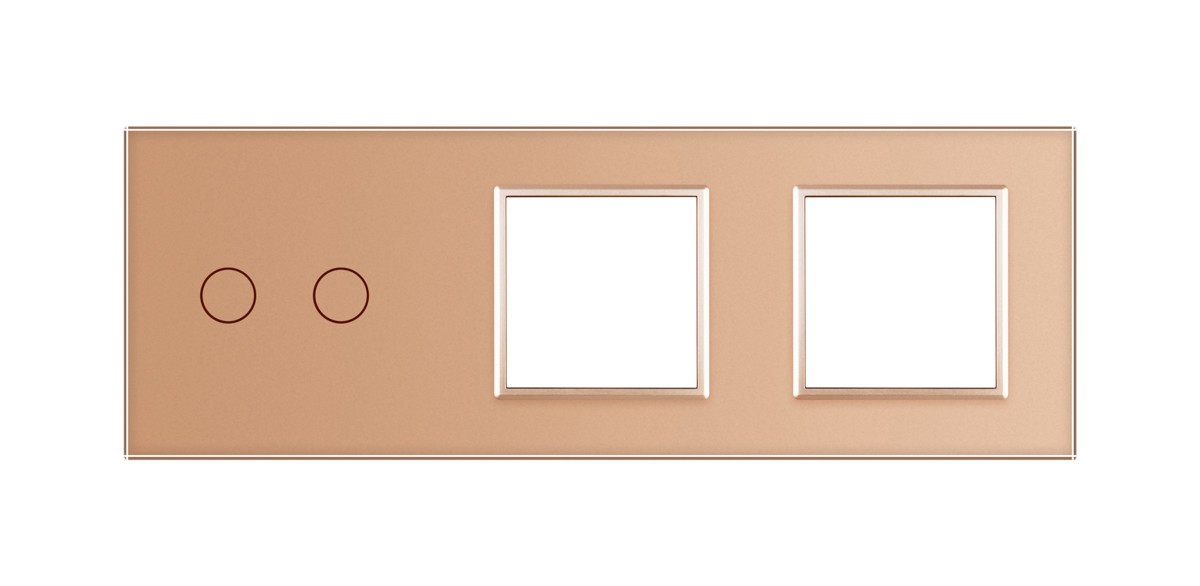 Стеклянная лицевая панель из закаленного стекла предназначена для сенсорных модулей и модулей розеток Livolo. Данный вариант панели подходит для монтажа 1-ого сенсорного выключателя для управления 2-мя зонами освещения. Двойная рамка подходит для монтажа 2х электрических розеток, 4-ух мультимедийных розеток.