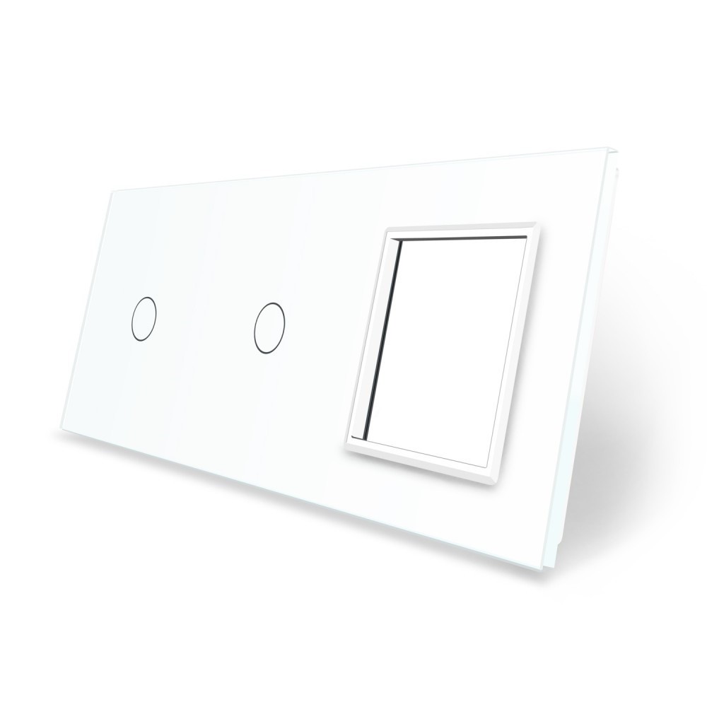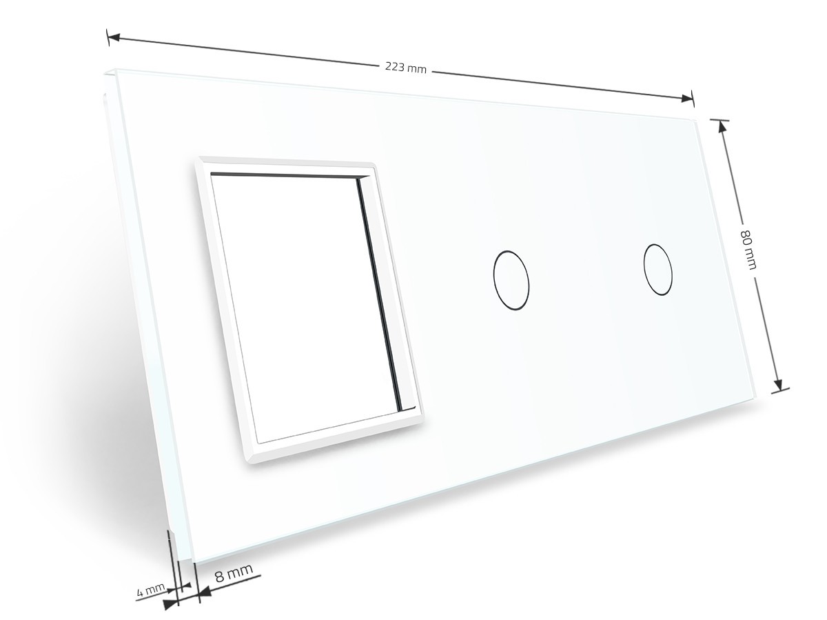Стеклянная лицевая панель из закаленного стекла предназначена для сенсорных модулей и модулей розеток Livolo. Данный вариант панели подходит для монтажа 2-х сенсорных выключателей для управления 2-я зонами освещения. Рамка подходит для монтажа 1-й электрической розетки, 2-х мультимедийных розеток.