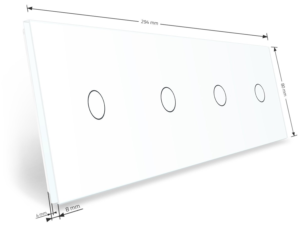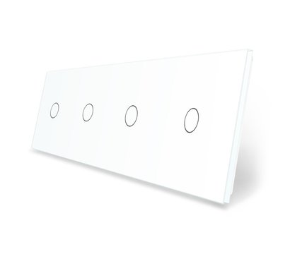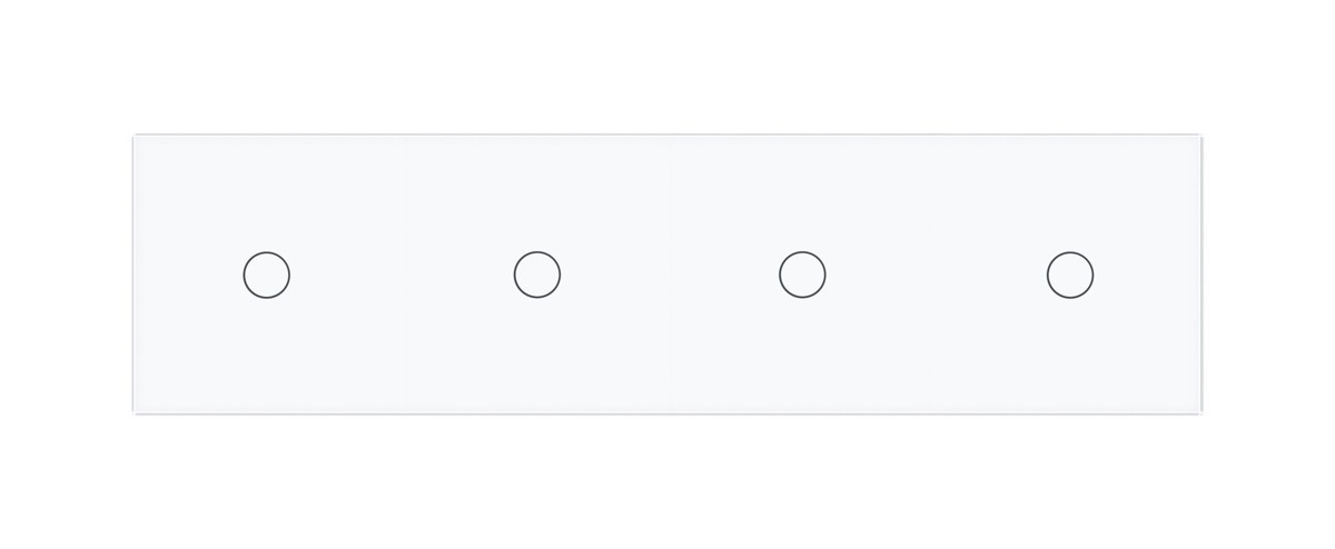 Стеклянная лицевая панель из закаленного стекла предназначена для сенсорных модулей Livolo. Данный вариант панели подходит для монтажа 4-х сенсорных выключателей для управления четырьмя (1+1+1+1) зонами освещения.