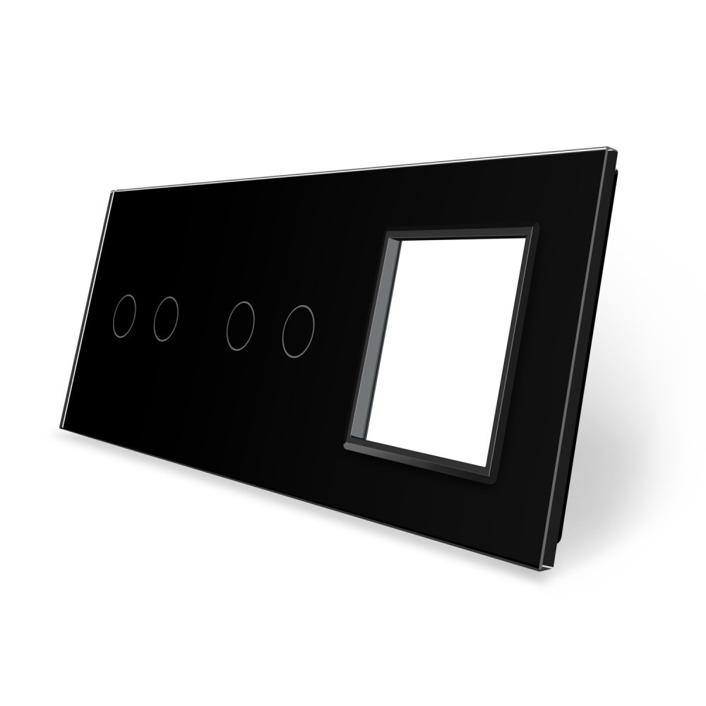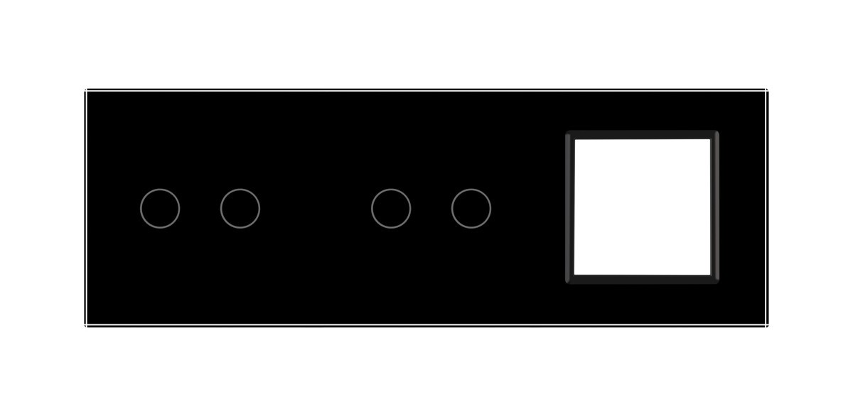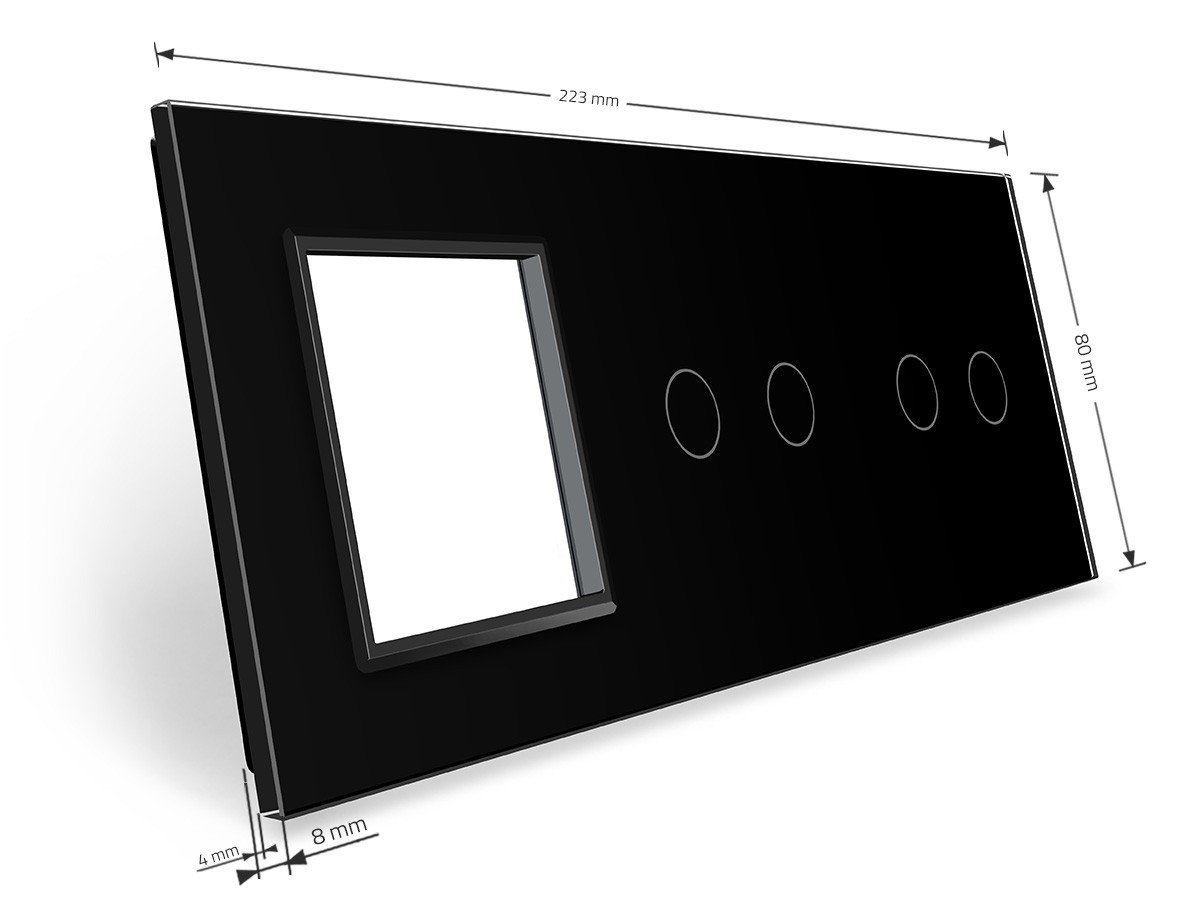 Стеклянная лицевая панель из закаленного стекла предназначена для сенсорных модулей и модулей розеток Livolo. Данный вариант панели подходит для монтажа 2-х сенсорных выключателей для управления 4-я зонами освещения. Рамка подходит для монтажа 1-й электрической розетки, 2-х мультимедийных розеток.