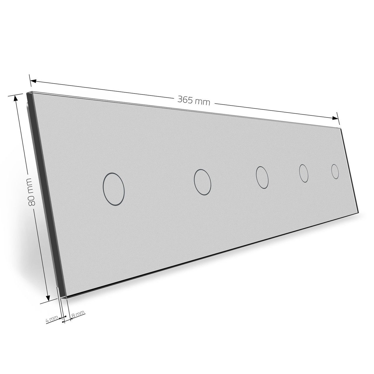 Стеклянная лицевая панель из закаленного стекла предназначена для сенсорных модулей Livolo. Данный вариант панели подходит для монтажа 5-и сенсорных выключателей для управления четырьмя (1+1+1+1+1) зонами освещения.