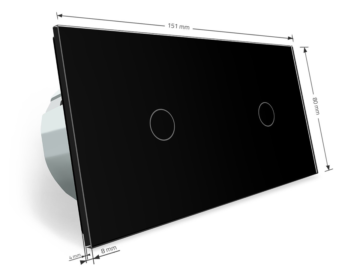 - Лицевая поверхность изготовлена из высокопрочного прозрачного стекла с окраской изнутри, тем самым обеспечивая высокий срок службы и возможность очистки данного сенсорного выключателя;