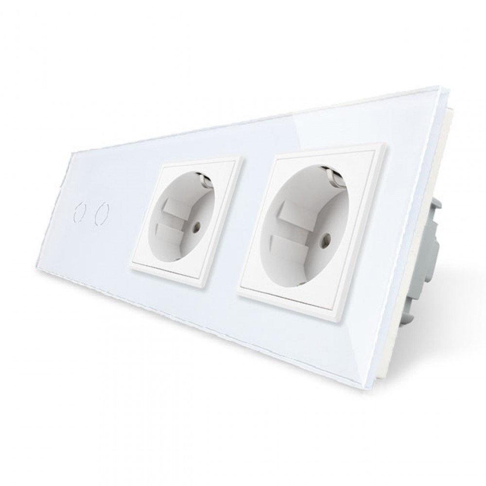 - Сенсорный выключатель Livolo 2 канала 2 розетки белый стекло (VL-C702/C7C2EU-11)