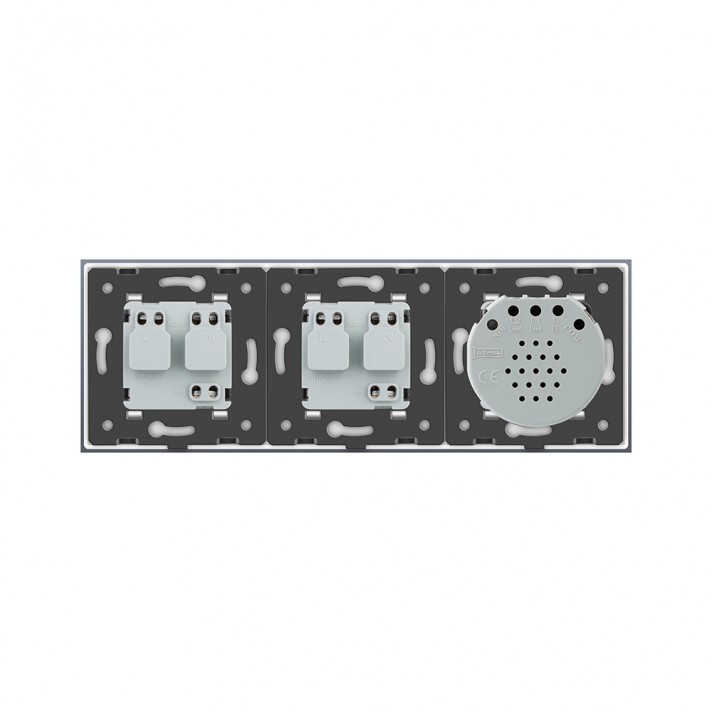- Сенсорный выключатель с розеткой в сборе или сенсорный модуль + модуль розетки + стеклянная лицевая панель