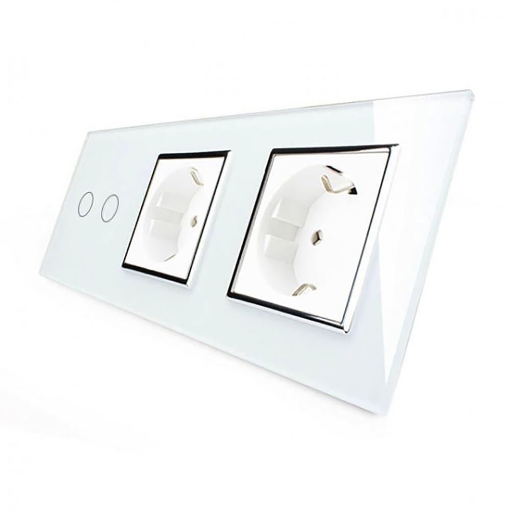 - Сенсорный выключатель Livolo 2 канала 2 розетки белый хром стекло (VL-C702/C7C2EU-11C)