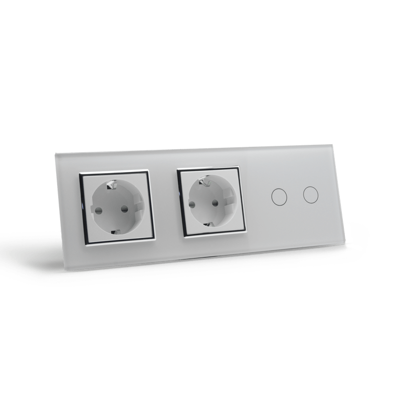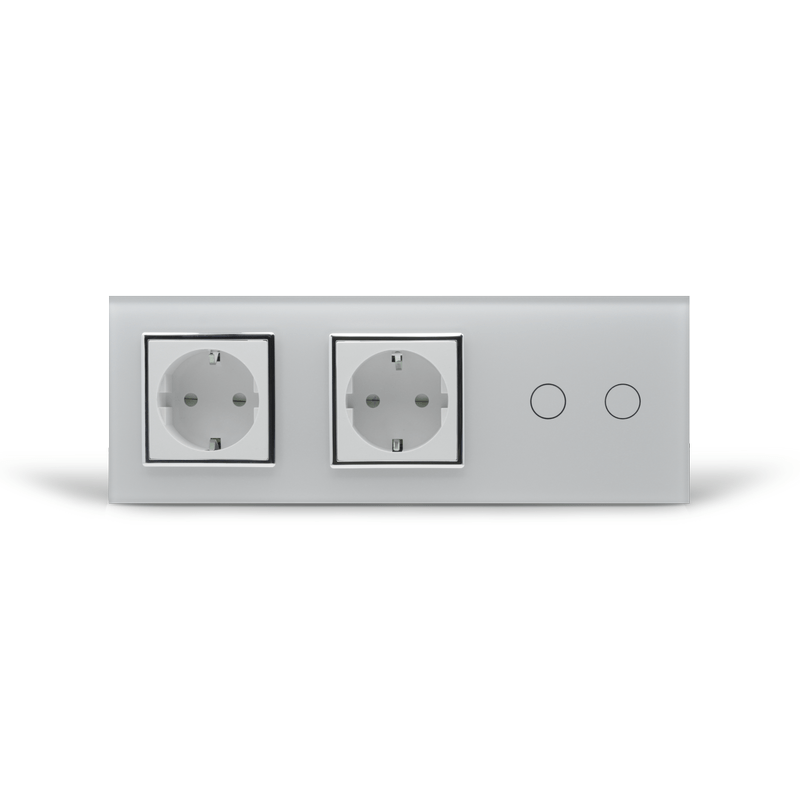 - Сенсорный выключатель с розеткой в сборе или сенсорный модуль + 2 х модуль розетки + стеклянная лицевая панель