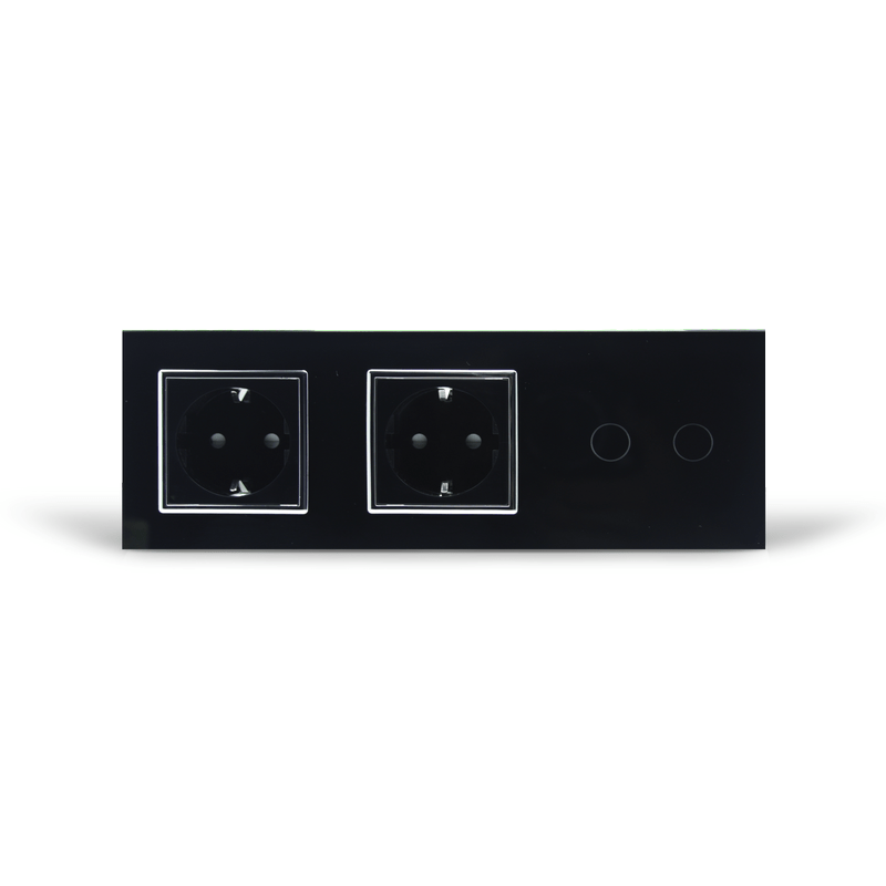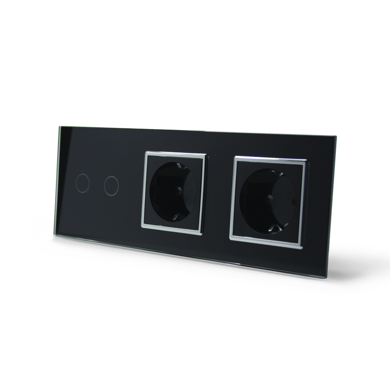 - Сенсорный выключатель Livolo 2 канала 2 розетки черный хром стекло (VL-C702/C7C2EU-12C)