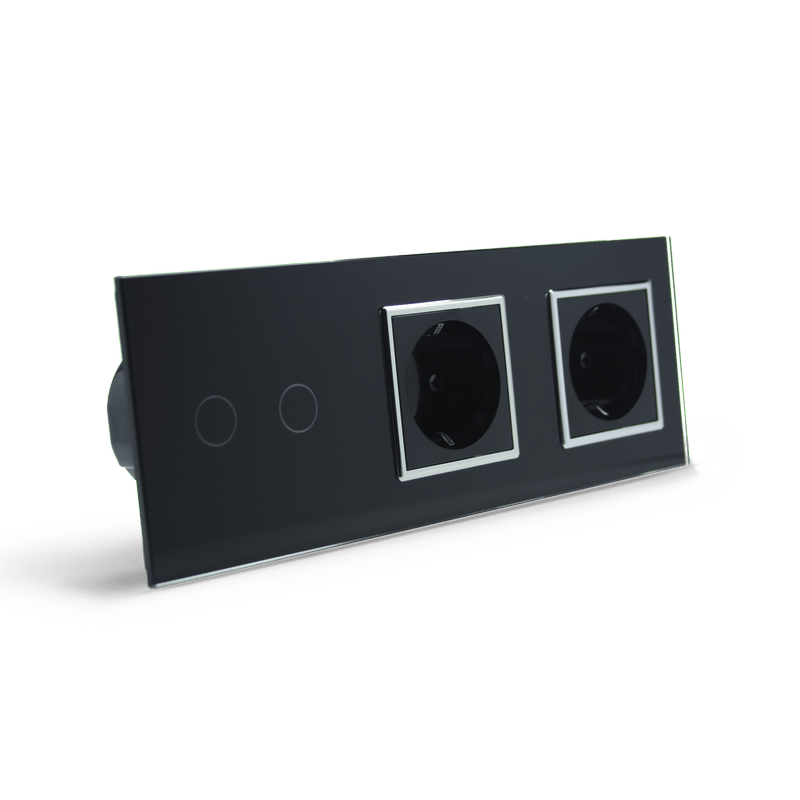 Сенсорный настенный выключатель на два канала с двумя розетками