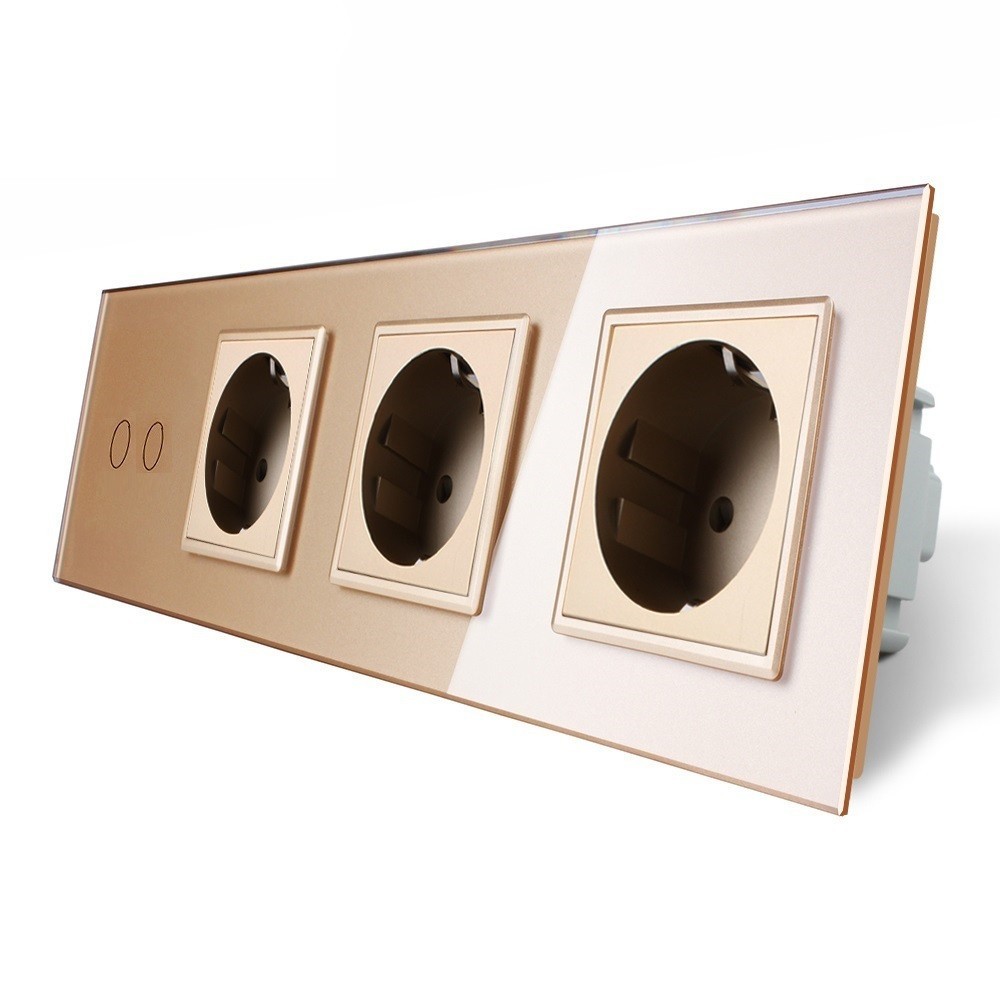 - Сенсорный выключатель Livolo 2 канала 3 розетки золото стекло (VL-C702/C7C3EU-13)