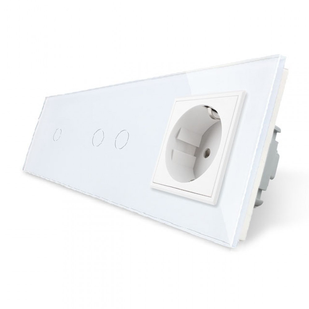- Сенсорный выключатель Livolo 3 канала (1-2) с розеткой белый стекло (VL-C701/C702/C7C1EU-11)