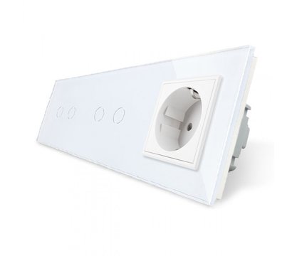 - Сенсорный выключатель Livolo 4 канала (2-2) с розеткой белый стекло (VL-C702/C702/C7C1EU-11)