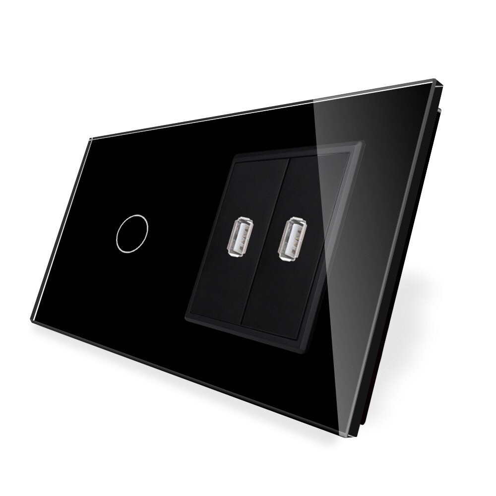 - Сенсорный выключатель Livolo с USB розеткой черный стекло (VL-C701/2USB-12)