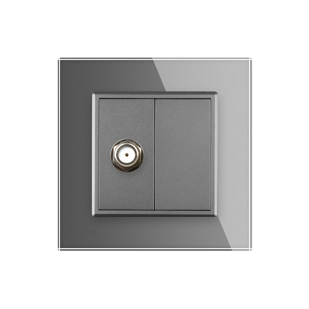 SAT розетка серого цвета в стеклянной рамке. Размер 80*80 мм.