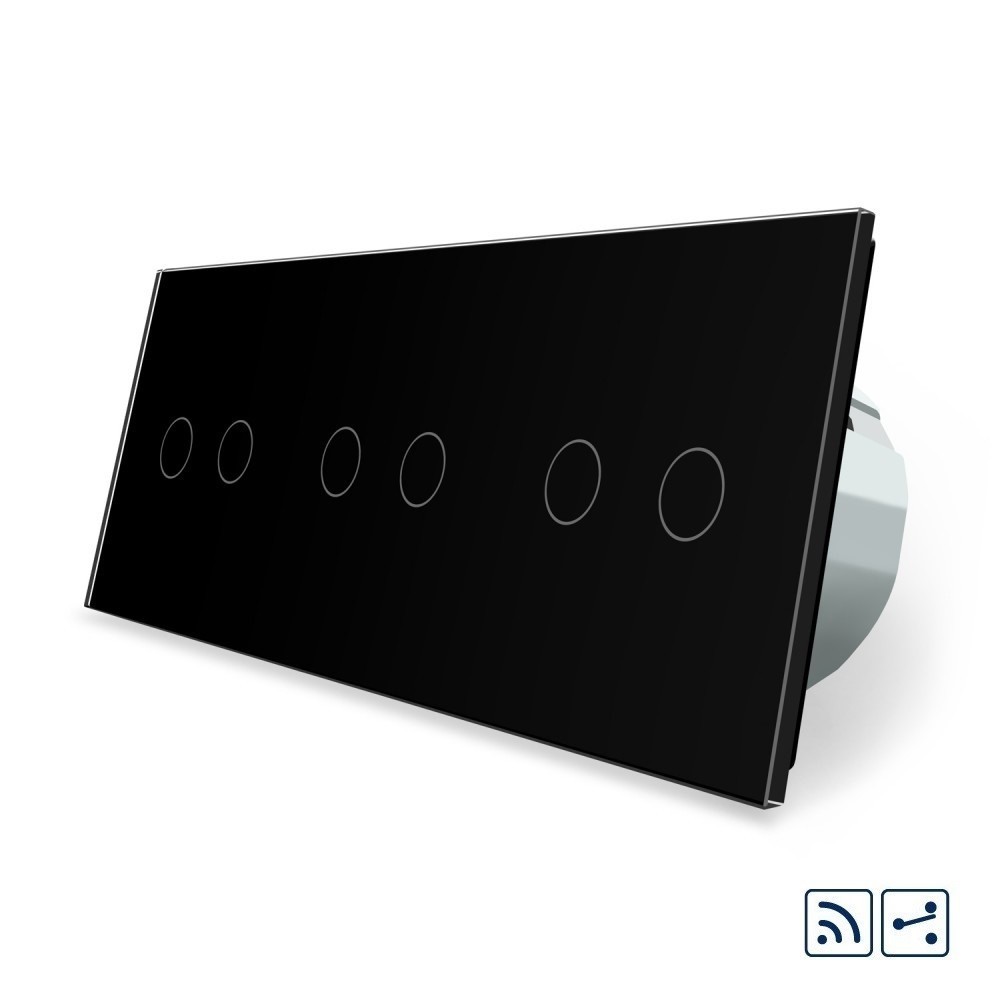 - Сенсорный радиоуправляемый проходной выключатель Livolo 6 каналов (2-2-2) черный стекло (VL-C706SR-12)