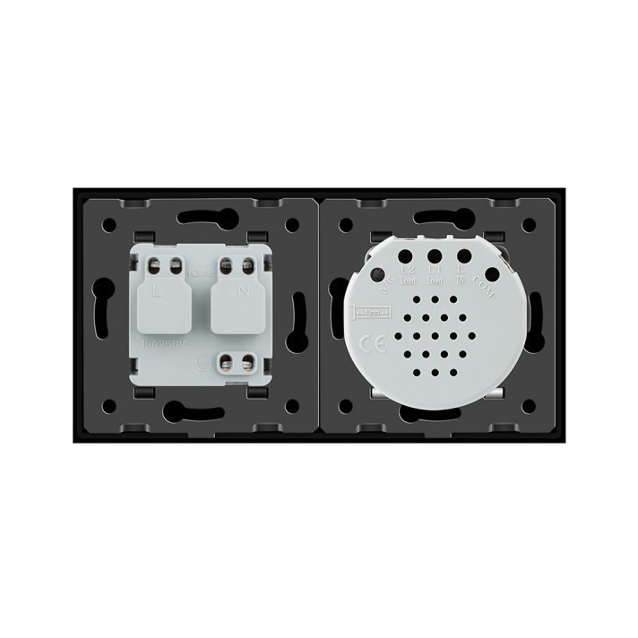 - Сенсорный выключатель с розеткой в сборе или сенсорный модуль + модуль розетки + стеклянная лицевая панель