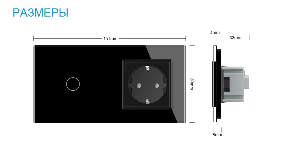 Размеры выключателя Livolo с розеткой 151*80 мм