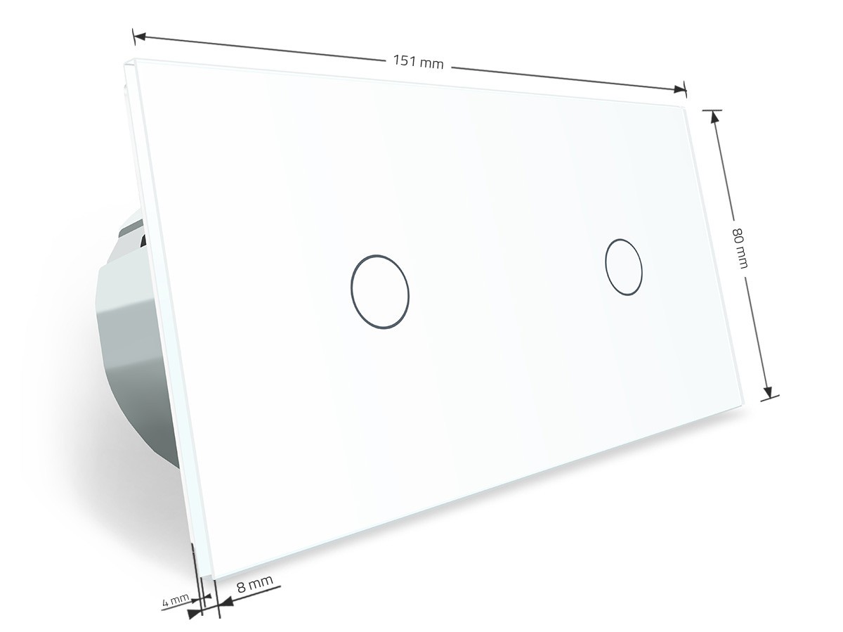 - Лицевая поверхность изготовлена из высокопрочного прозрачного стекла с окраской изнутри, тем самым обеспечивая высокий срок службы и возможность очистки данного сенсорного выключателя;
