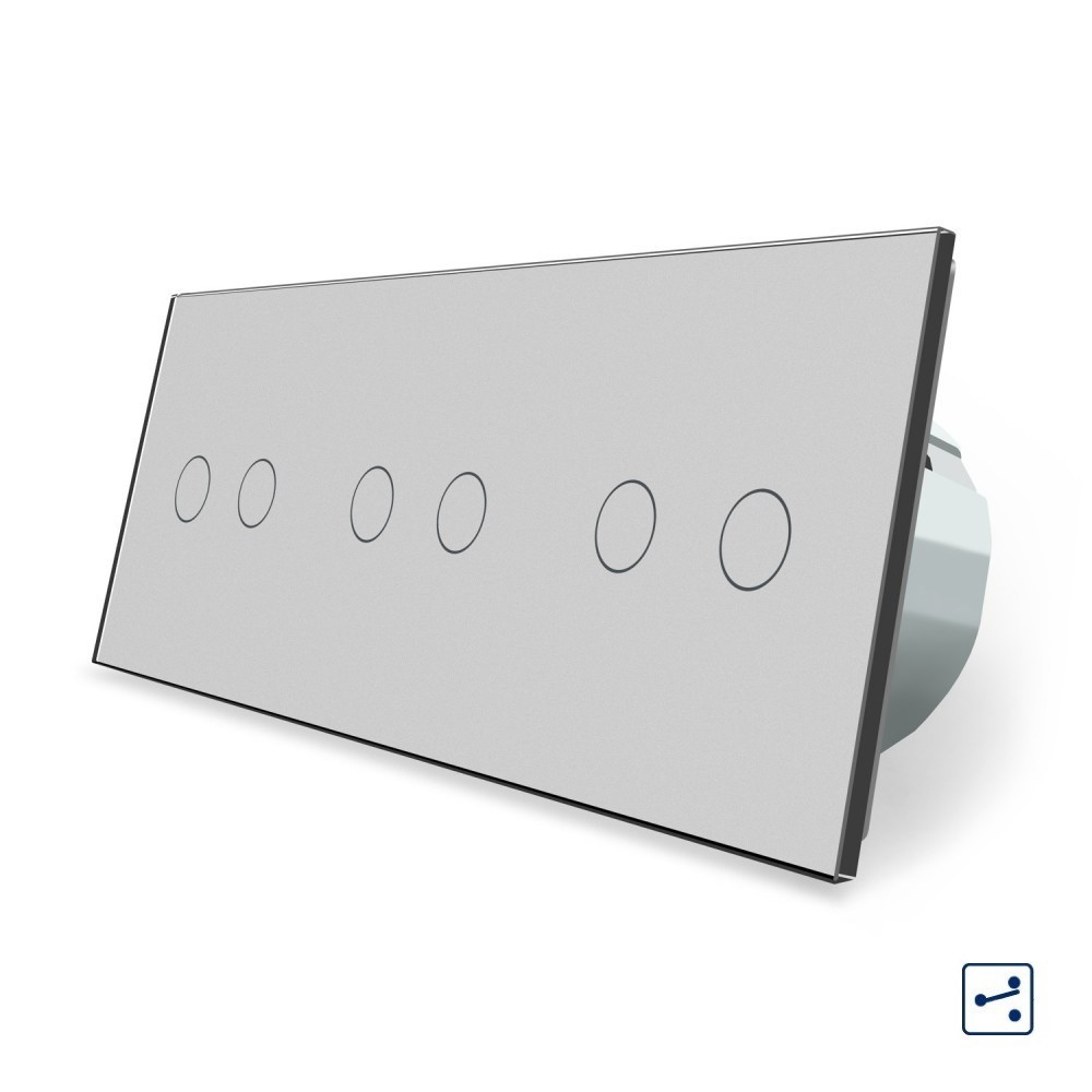 - Сенсорный проходной выключатель Livolo 6 каналов (2-2-2) серый стекло (VL-C706S-15)