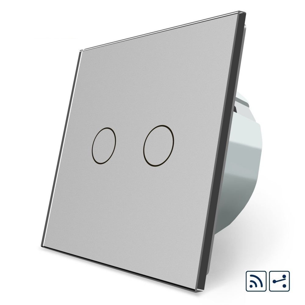 - Сенсорный радиоуправляемый проходной выключатель Livolo 2 канала серый стекло (VL-C702SR-15)