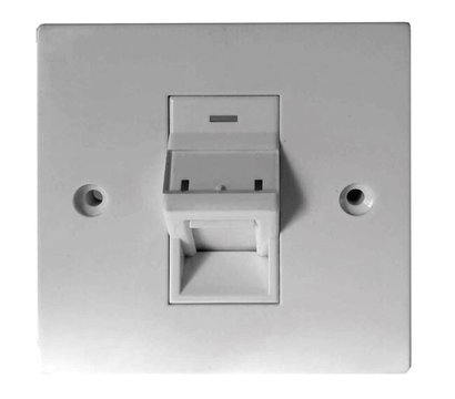 Недорогая компьютерная розетка со шторкой под модуля Keystone Jack, размеры 86х86 миллиметров. Цвет белый.