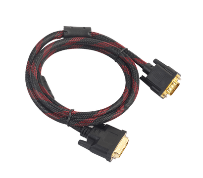 Качественный кабель VGA (папа)-DVI-I (папа)(24+5) в круглом исполнении длиной 1,5 метра. На борту 2 феррита.Цвет черный.