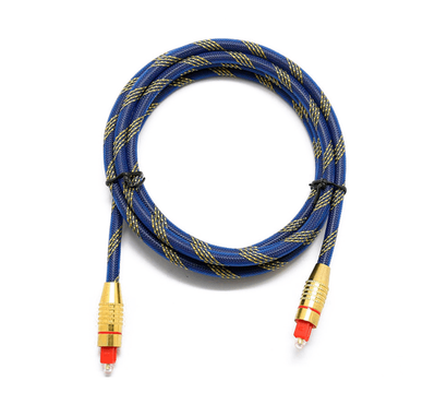 Кабель оптический цифровой стерео в нейлоновой оплетке длиной 1,5 метра, OD6.0 (мм), 250 Мегабит/с, цвет синий+золотой, форма поставки пакет.