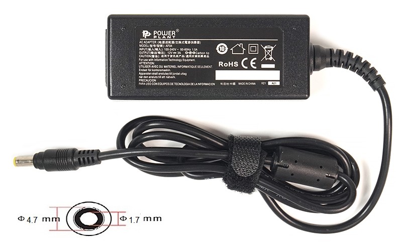 - Блок питания PowerPlant для ноутбука Asus 220V, 12V 36W 3A, 4.7х1.7мм (AS36A4717)