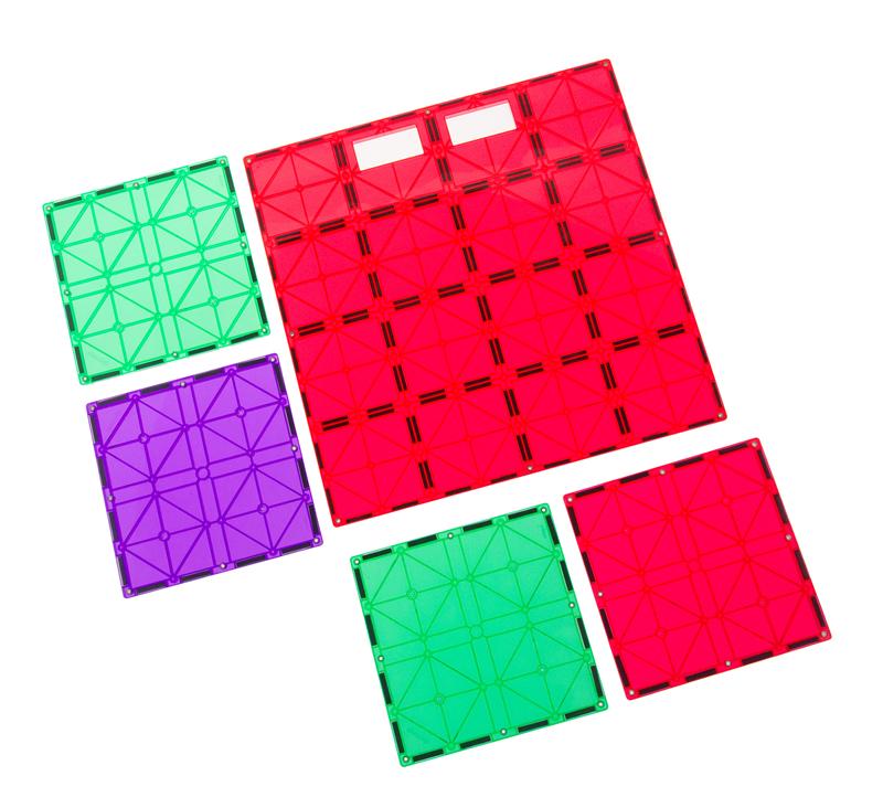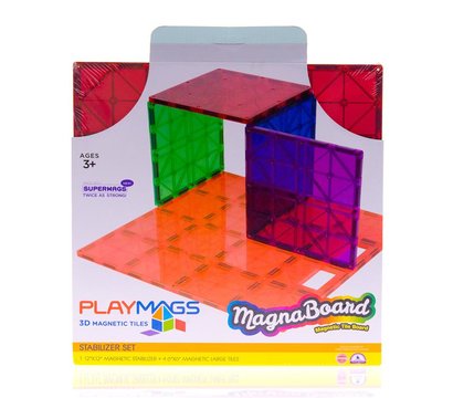 Набор стабилизирующих платформ для конструкторов бренда Playmags. В комплект входит 1 большая платформа размером 30,5 х 30,5 см, и 4 меньших – 15,2 х 15,2 см каждая. Платформы представляют собой доски из цветного полупрозрачного пластика с встроенными маленькими магнитами. Цвет магнитных досок может отличаться, в зависимости от комплектации. Основы для строительства – большие помощники детям, поскольку имеют стабилизирующий эффект для конструкций и позволяют детям развивать воображение, создавая необычные здания. Конструкторы бренда Playmags дают возможность детям развивать свои умения и навыки: логическое и творческое мышление, воображение, распознавание цветов и форм, мелкую моторику.