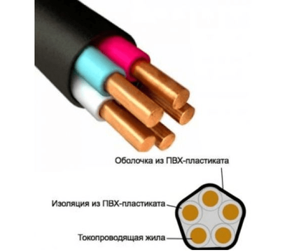 - Изоляция: для каждой из жил ПВХ пластикатом в различной расцветке. Голубая расцветка отвечает нулевой жиле, а зелено-желтая - заземлению.