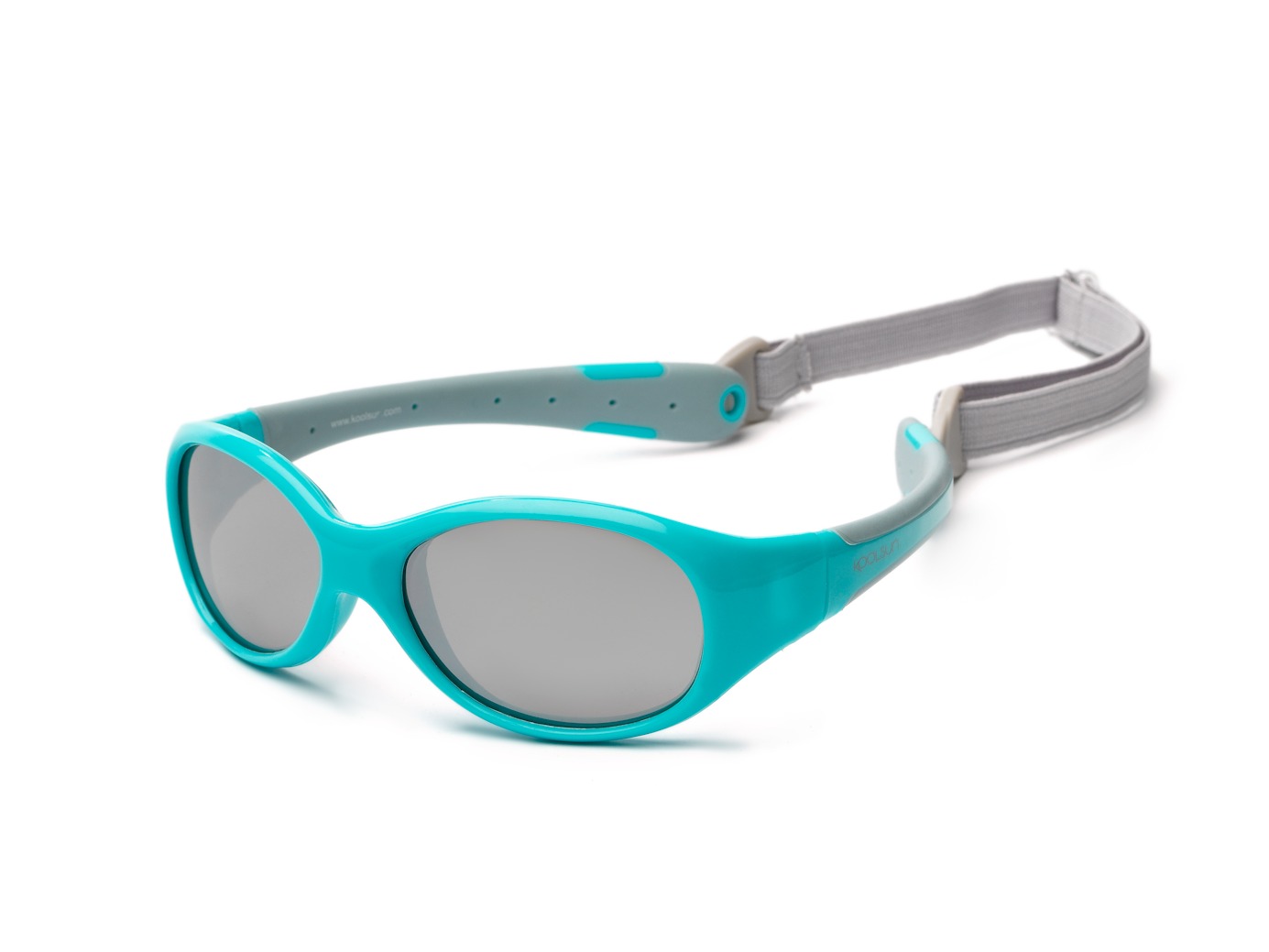 - Дитячі сонцезахисні окуляри Koolsun KS-FLAG000 бірюзово-сірі серії Flex (Розмір: 0+)