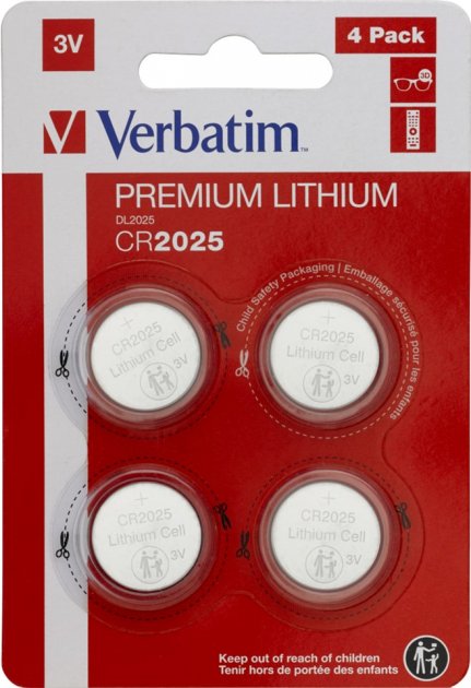 Verbatim Premium CR2025 BL – набор из 4-х литиевых Li-ion (Lithium) батареек CR2025 типа. Такие батарейки находят свое широкое применение в пульта ДУ, 3D-очках, электронной технике. Рабочее напряжение 3 Вольта.