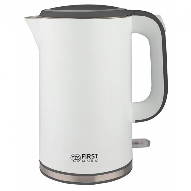 Электрочайник First FA-5407-2-GR имеет дизайн, отличающийся характерными для современных устройств чертами: простая цилиндрическая форма, базовая цветогамма, отсутствие акцентированных вычурных деталей. За счет своей аскетичности техника идеально подходит к любым интерьерным решениям, а также способна стать настоящим украшением вашей кухни.
