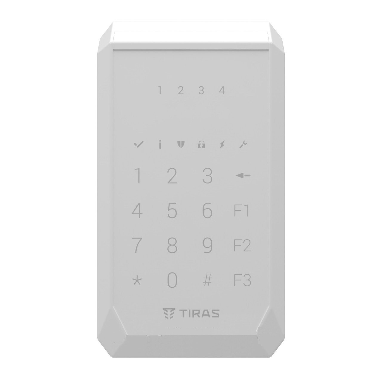 Тирас K-PAD4 White – потрясающая клавиатура для сенсорного управления и программирования системы охраны на базе ППК Орион NOVA II. На борту идут четыре светодиодных индикатора зон. С активацией кнопки она поддается подсветке. Наработка на отказ Тирас K-PAD4 White не менее 20 000 часов. Связь с ППК строится по шине RS-485 на дистанцию до 1000 метров. Для питания потребуется подача на устройство напряжения от 9,3 до 15,2 Вольт. Потребление тока на уровне 30 мА. Комплект поставки Тирас K-PAD4 White включает в себя четыре ножки, паспорт и саму клавиатуру.