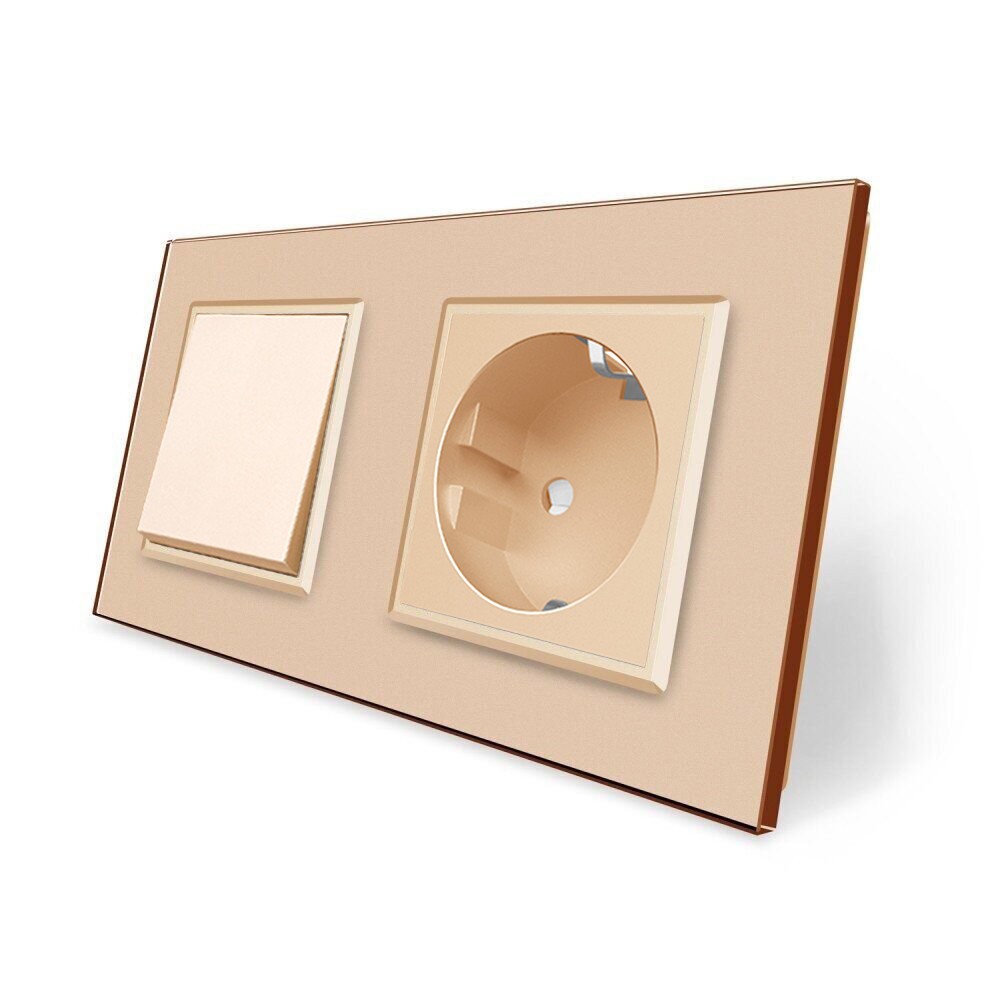 Livolo VL-C7C1EUK1-13 Gold glass – комбинированное решение в лице одноканального клавишного выключателя и одно портовой бытовой розетки с контактом заземления. В модели удачно сочетаются современный стиль, потрясающее качество компонентов и эстетичность внешнего вида. Нет боязни к ультрафиолету и новизна сохраняется на протяжении длительных лет. Размеры 151 миллиметр в длине на 80 миллиметров в ширине. Крепление происходит при помощи винтов. Материал рамки стекло. Цвет золотой.