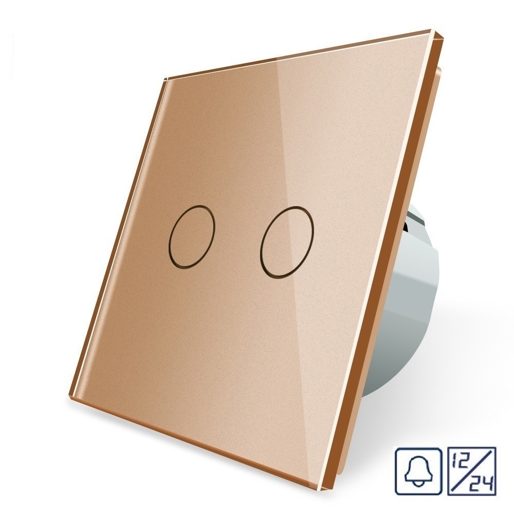 - Сенсорная кнопка 2 сенсора 12/24В золотой стекло Livolo (VL-C702CH-13)