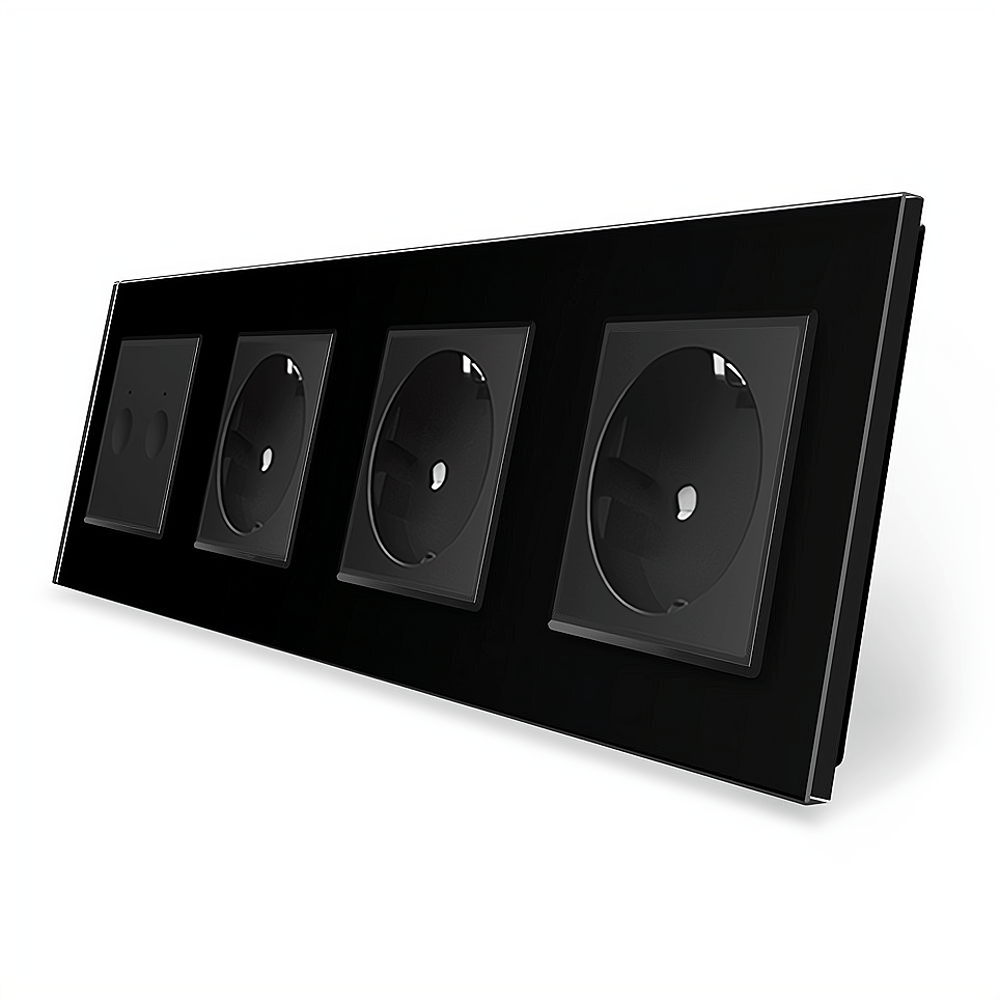 - Сенсорный выключатель Sense 2 сенсора 3 розетки черный стекло Livolo (VL-C7FC2/FCTC16A/FCTC16A/FCTC16A-8BP)