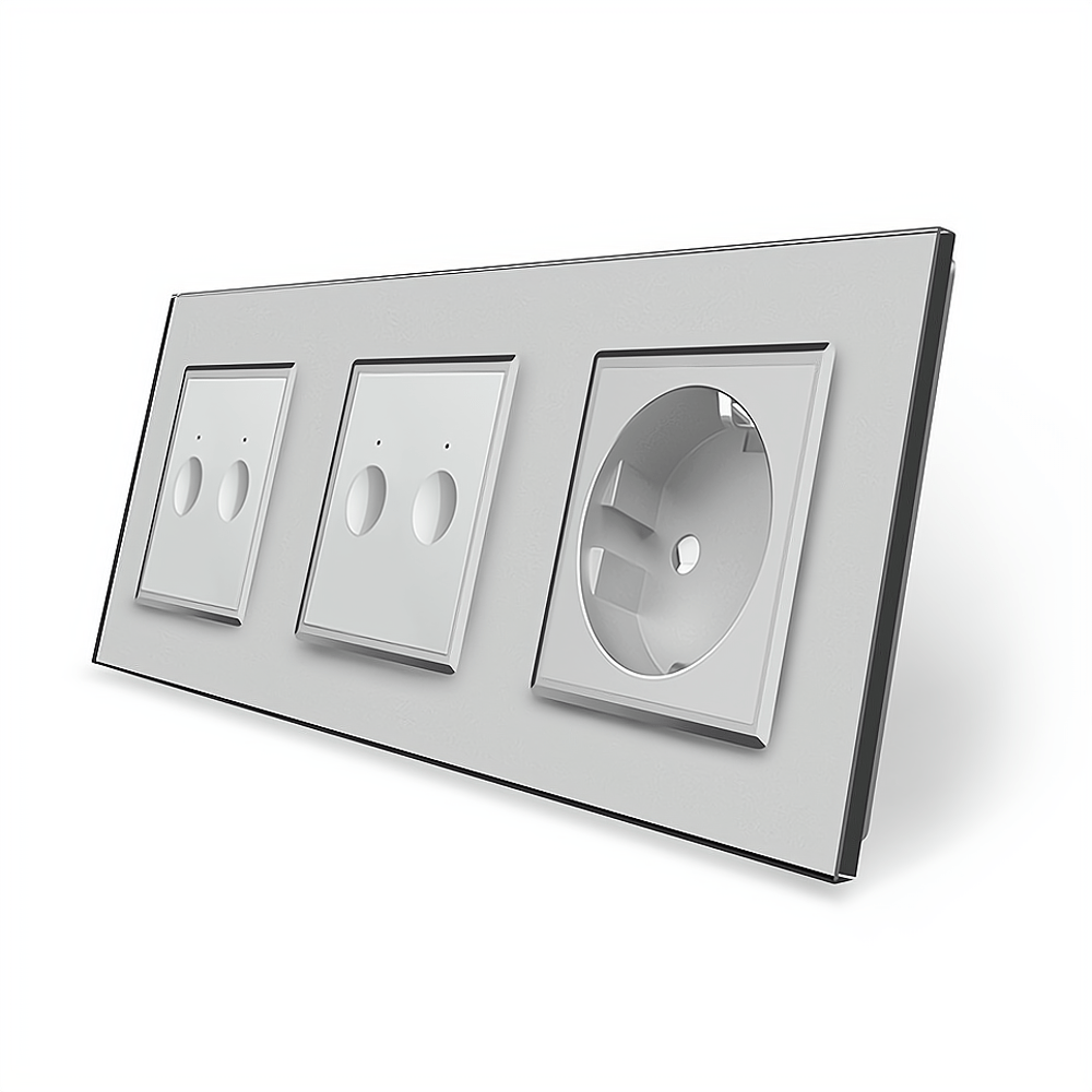 - Сенсорный выключатель Sense 4 сенсора (2-2) 1 розетка серый стекло Livolo (VL-C7FC2/FC2/FCTC16A-6IP)
