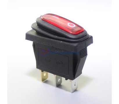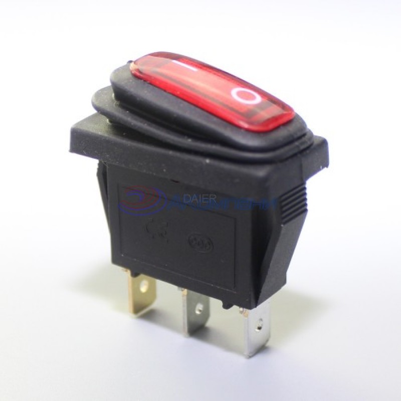 Daier KCD3-101NW RD – влагозащищенный (IP45) KCD типа переключатель ON-OFF с красной клавишей с LED подсветкой. Номинальный ток здесь 20 Амперов при напряжении 125 Вольт и 15 Амперов при напряжении 250 Вольт. На борту одна контактная группа с 3 контактами сопротивления не более 35 мОм. В поддержке фиксация положения. Срок службы достигает отметки в 10 000 циклов.
