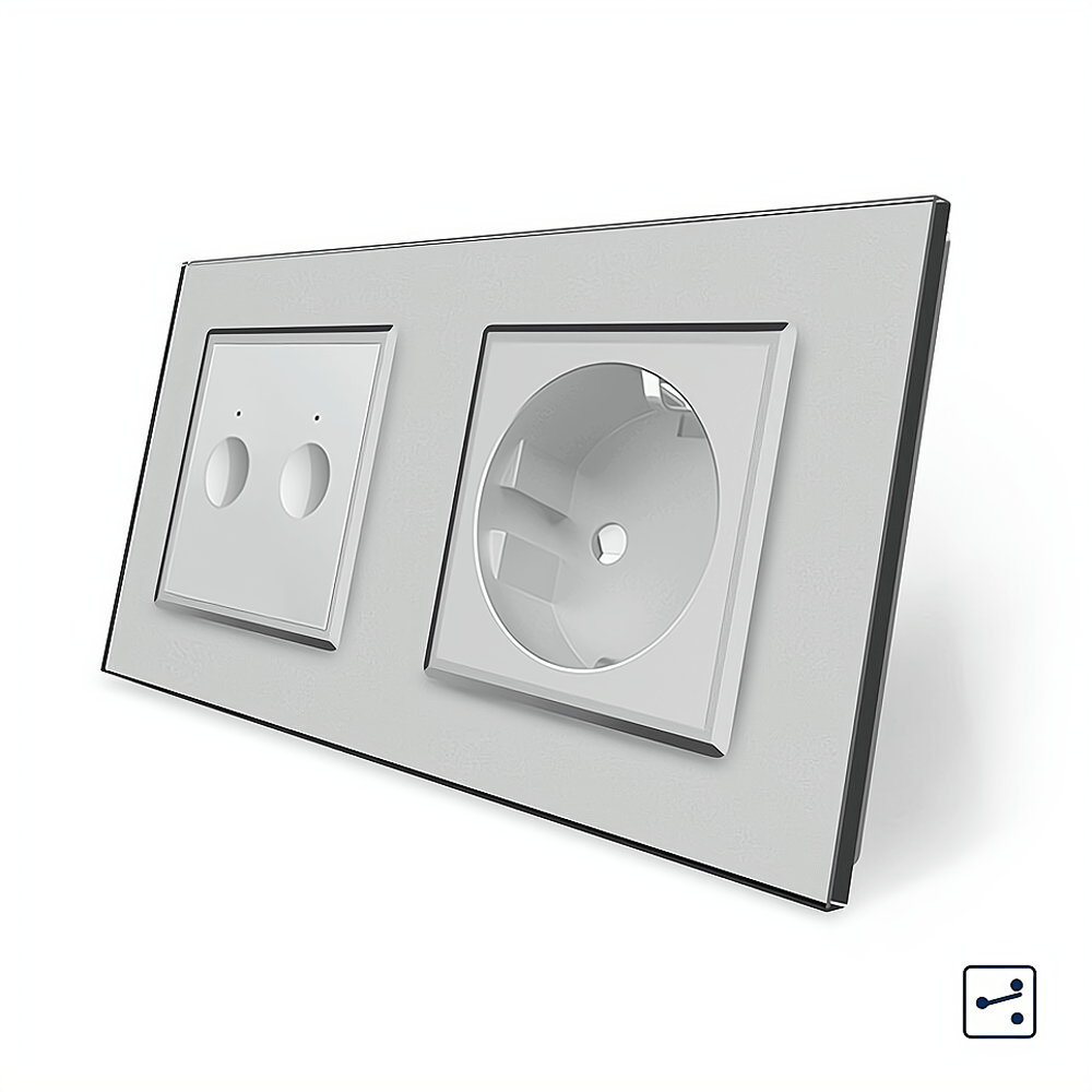- Сенсорный проходной выключатель Sense 2 сенсора 1 розетка серый стекло Livolo (VL-C7FC2S/FCTC16A-4IP)