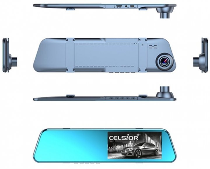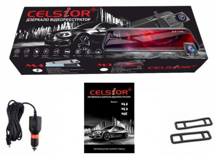 Celsior DVR M4 – современное моноблочное зеркало заднего вида со встроенным Full HD видеорегистратором. В камере регистратора использован сенсор GC1054 4G при котором идет запись при разрешающей способности 1920 на 1080 пикселей при частоте 30 кадров в секунду. Формат видеозаписи один из наиболее популярных AVI. Помимо записи видео в поддержке также фотосъемка в JPEG формате. За производительностью стоит современный процессор Jl5212.