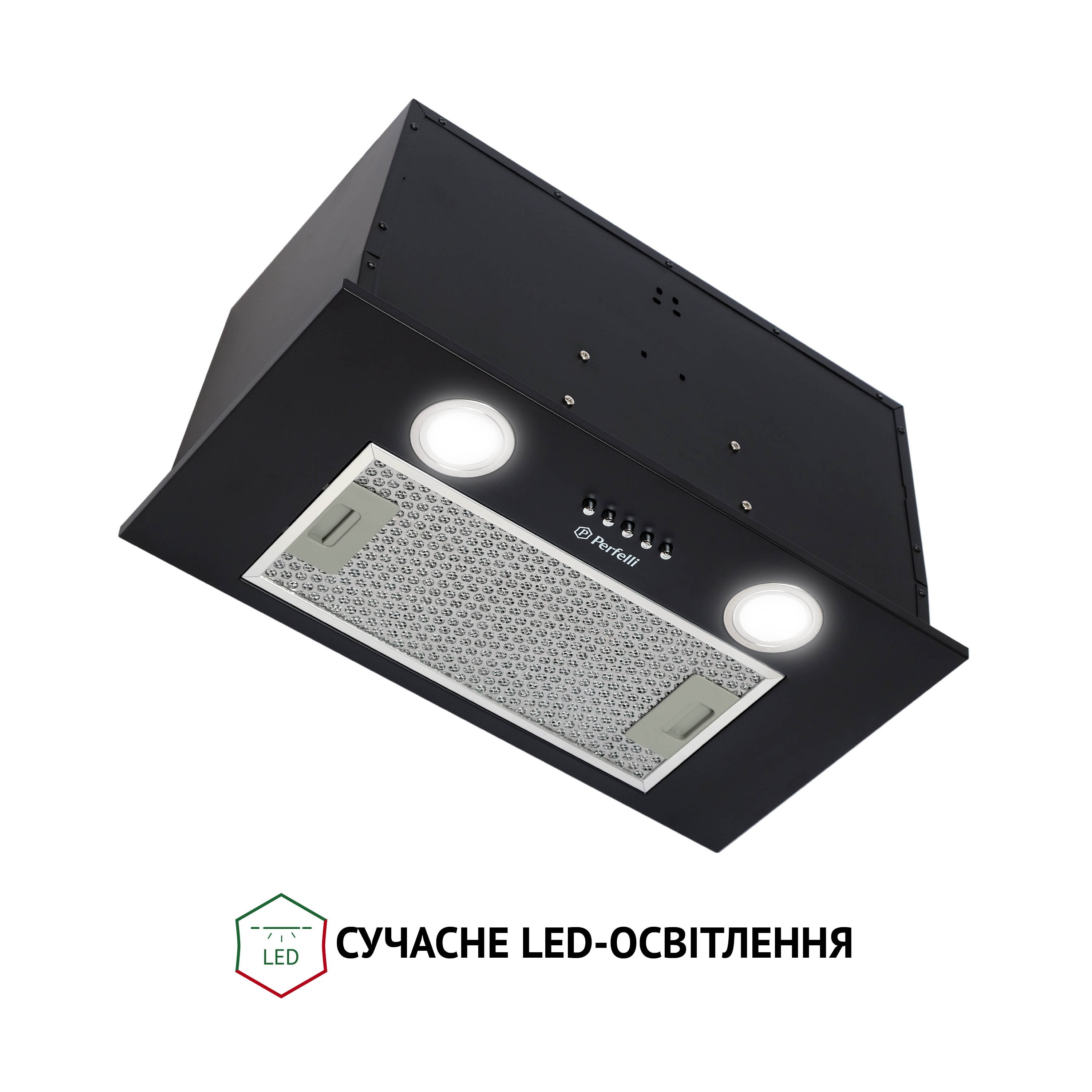 жировой фильтр (алюминиевый с нержавеющей перфорацией), предназначенный для задерживания копоти и испарений;