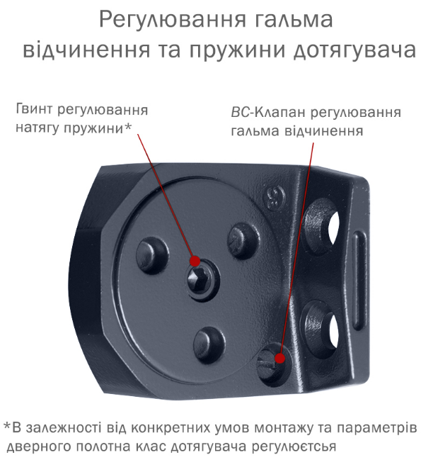 Регулировка по классу EN 1/2/3/4 происходит путем изменения расстояния отверстий монтажа, относительно осевой линии дверных петель.