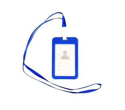 Вертикальный пластиковый бейдж синего цвета на шнурке длиной 37 сантиметров. Позволяет задать идентификацию сотрудников разместив на нем имя сотрудника, эго должность или отдел. Размеры бейджа 111x69x5 миллиметров.