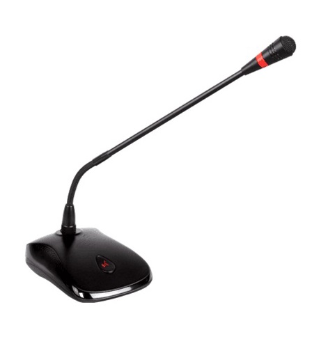 CMX TM-303C – настольного размещения на гусиной шее микрофон конденсаторного типа, специально разработанный для различных мероприятий, совещаний. Модель может похвастаться четкой передачей голоса сведя к минимуму любые искажения. Голос успешно принимаем на приличной дистанции от 40 до 80 сантиметров. Рабочая частота здесь находится в диапазоне от 20 до 20 кГц. Подключение происходит через XLR интерфейс. Сбалансированный выход 200 Ом с 5-метровым микрофонным кабелем. В помощь при эксплуатации служит кольцевая индикация режима работы. Корпус состоит из пластика и соответствует классу герметичности IP31. Размеры микрофона: 57x114x160 миллиметров. Питание CMX TM-303C фантомное производится напряжением 48 или 3 Вольта.