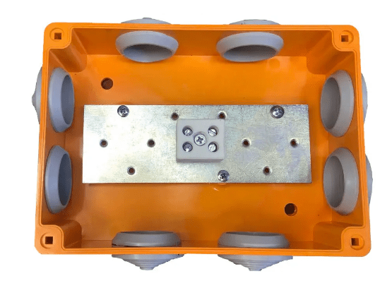 Крома КП-02-90 К2/4 – огнеупорная по классу P90 распределительная (коммутационная) коробка для кабельных сетей. Предлагается два ответвления (полюса). Допустимо сечение кабеля не более 4 мм2. Допустимая нагрузка по току в линии 24 Ампера. Рабочее напряжение 250 Вольт. Температура среды эксплуатации должна принадлежать диапазону от -40 до +80 градусов по Цельсию. Размеры: 162x122x48 миллиметров.