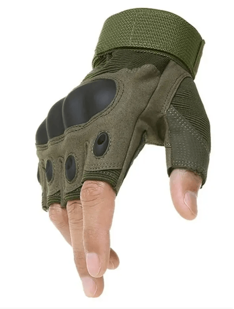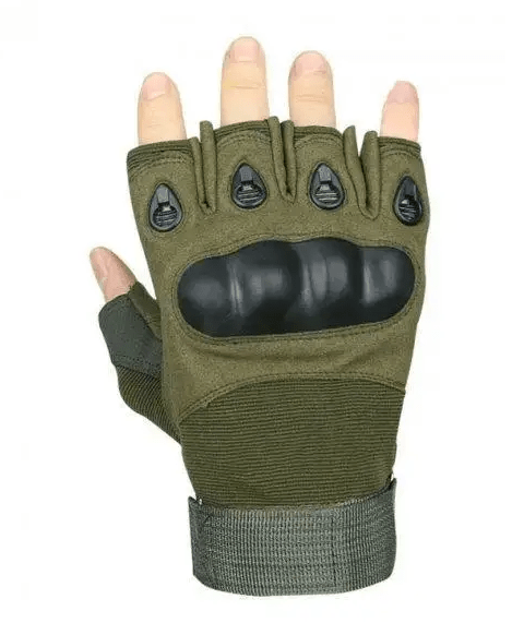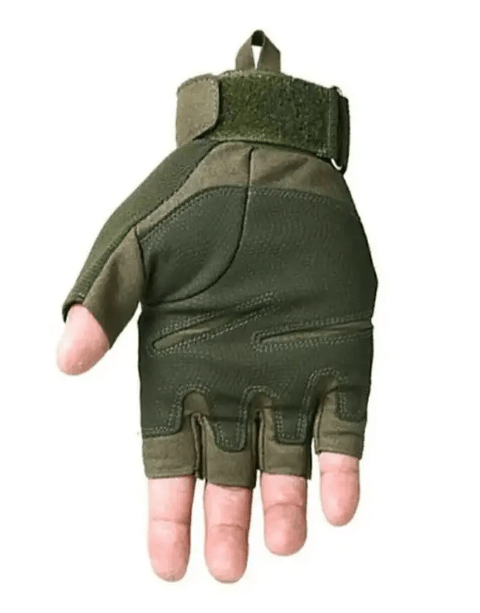 Прочные тактические перчатки L размера с открытыми пальцами. Изготовлены внешне из сочетания нейлона и кожи, а вставка же идет из пластика и кожи. Запястья для комфорта фиксируется на липучку. Ладонь представлена нескользящей накладкой на основе искусственной кожи в результате чего пропадает ощущения что вы в перчатках при обращении с ружьем. Кожаная вставка на тыльной стороне служит надежным средством защиты от травм кистей рук. Специальные вставки на каждом из пальцев выступают как средством защиты от травм так и исполняют функцию вентиляции. Цветовое исполнения олива.