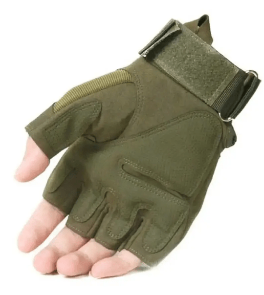 Прочные тактические перчатки М размера с открытыми пальцами. Изготовлены внешне из сочетания нейлона и кожи, а вставка же идет из пластика и кожи. Запястья для комфорта фиксируется на липучку. Ладонь представлена нескользящей накладкой на основе искусственной кожи в результате чего пропадает ощущения что вы в перчатках при обращении с ружьем. Кожаная вставка на тыльной стороне служит надежным средством защиты от травм кистей рук. Специальные вставки на каждом из пальцев выступают как средством защиты от травм так и исполняют функцию вентиляции. Цветовое исполнения олива.