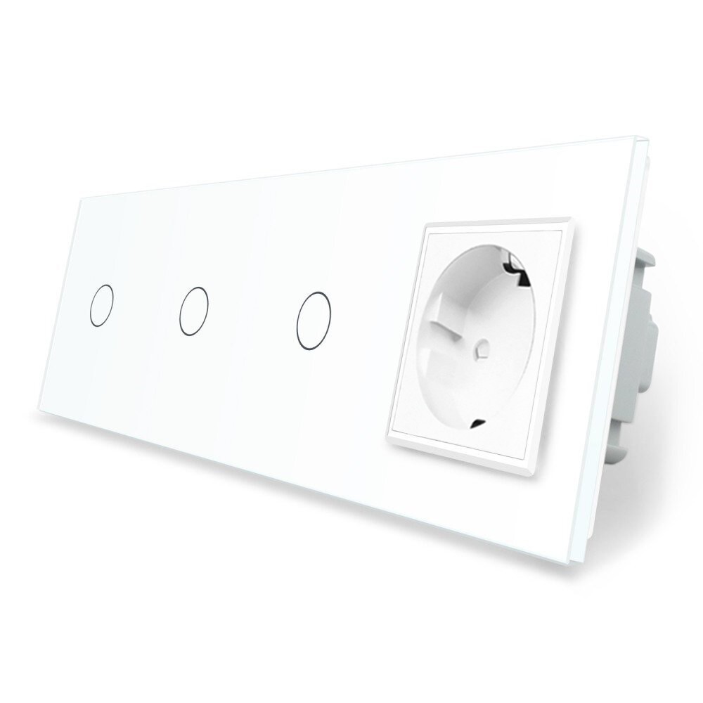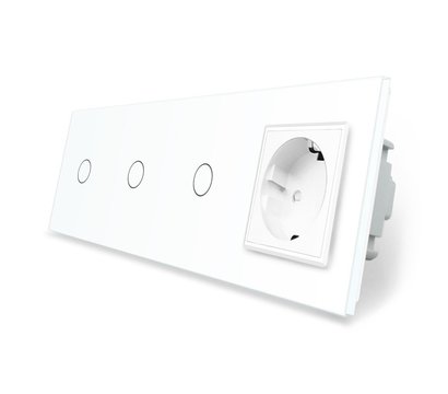 - Сенсорный выключатель 3 сенсора 1 розетка Livolo белый стекло (VL-C701/C701/C701/C7C1EU-11)