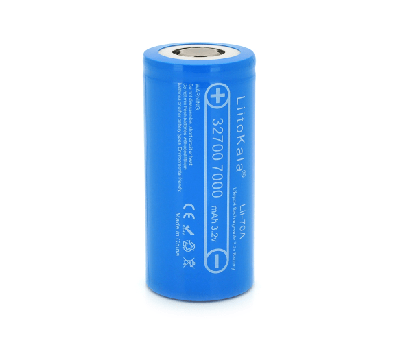 LiitoKala Lii-70A – экологически безопасная и качественная аккумуляторная батарея типоразмера 32700 на базе LiFePO4 электрохимической системы. При емкости 7000mah такая батарея найдет свое успешное применение в фонариках, электрических инструментах и так далее. Номинально напряжение составляет 3,2 Вольта. Рабочее напряжение колеблется от 2,5 до 3,65 Вольта. Цвет синий.