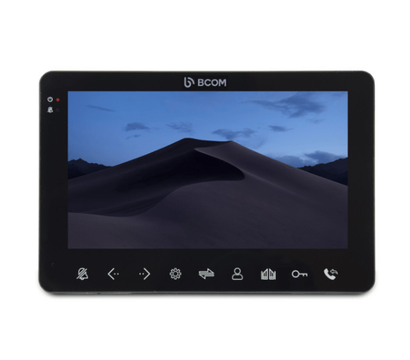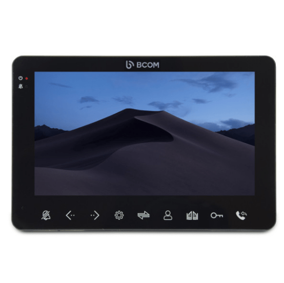 Bcom BD-780M Black – потрясающая новинка к концу 2022 года в лице цветного видеодомофона с TFT экраном диагонали в семь дюймов (1024 на 768 пикселей). Особенностью модели является встроенный датчик движения на 4 канала (одновременно запись с 1). Для управления здесь предложены сенсорные кнопки. Модель рассчитана на подключение до двух вызывных панелей по четырех проводному подключению. Также на борту два канала под подключение камер и два канала под датчики тревоги. Радует поддержка функции интеркома. Встроено реле. Монтаж модели производим накладным образом. Основу корпуса составил прочный пластик черного цвета. Размеры корпуса: 190x125x22 миллиметра. Рабочая температура колеблется в рамках от +5 до +50 градусов по Цельсию. Питание через встроенный блок допустимо в широких рамках от 100 до 240 Вольт. Мощность потребления Bcom BD-780M Black не более 8 Ватт.